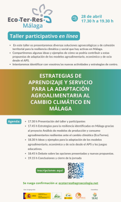 Participa en los talleres online sobre aprendizaje y servicio para la adaptación agroalimentaria al cambio climático que SEAE ha organizado para las provincias de Málaga (28 abril), Girona (24 abril) y Mallorca (15 abril).