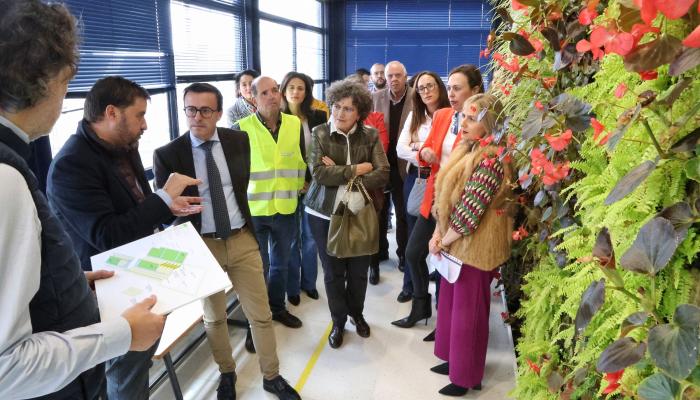 La segunda categoría de SbN son las fachadas verdes. El sistema de fachadas verdes implantado incluye un sistema de jardineras colocadas sobre estructuras metálicas paralelas y perpendiculares a las fachadas de los edificios. Incluye plantas trepadoras que protegen la fachada de la luz solar. También hay un sistema de toldos verticales con sustrato mineral para el crecimiento de vegetación vertical. Incluye plantas para riego hidropónico que incorpora nutrientes al sistema y permite su crecimiento sobre el sustrato mineral. En un pasillo interior del edificio se ha instalado un jardín vertical interior con una gran variedad de especies vegetales para mantener unos niveles de humedad adecuados y contener las altas temperaturas que se experimentan en esta estancia. Este sistema requiere un mantenimiento y poda continuos para evitar la caída del muro por sobrepeso.