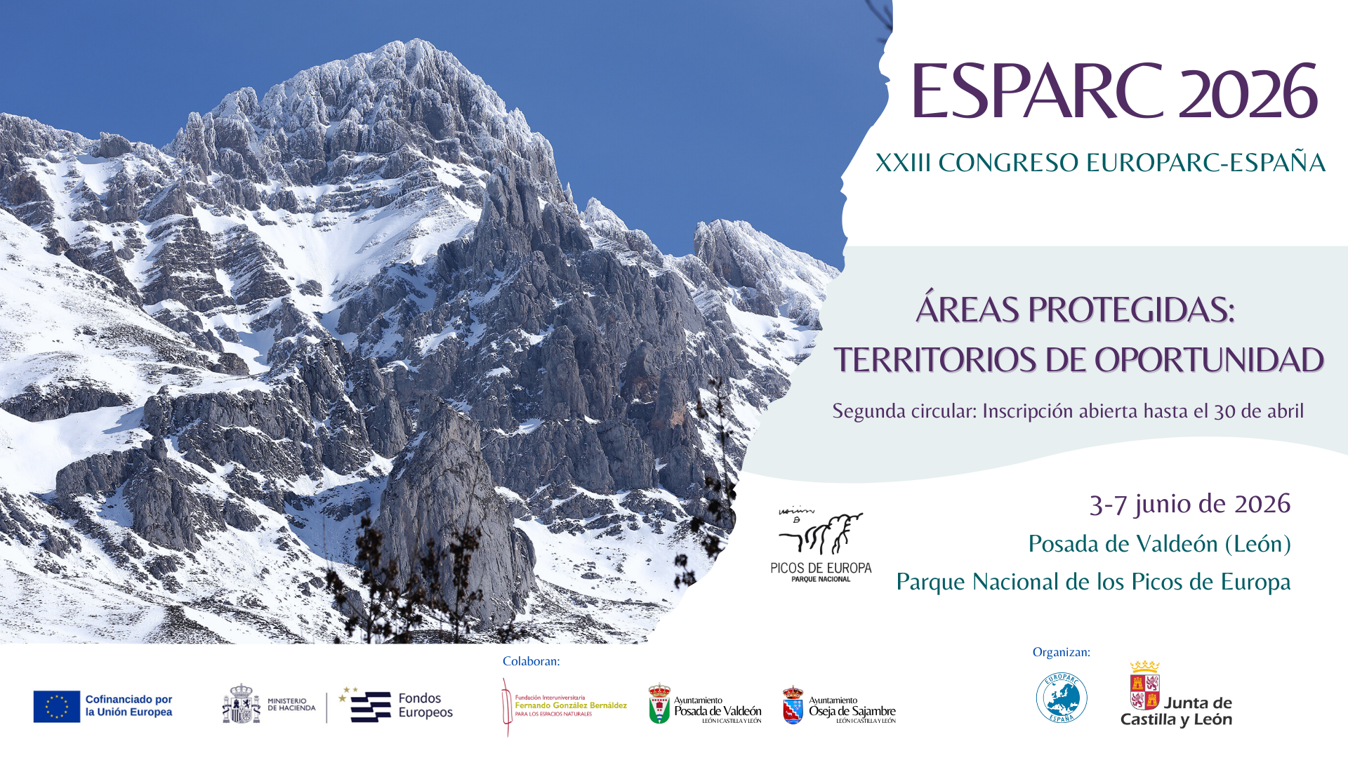 La Consejería de Medio Ambiente, Vivienda y Ordenación del Territorio de la Junta de Castilla y León y EUROPARC-España organizan el XXIII Congreso ESPARC 2026, que se celebrará en Posada de Valdeón, en el corazón de los Picos de Europa, del 3 al 7 de junio de 2026.