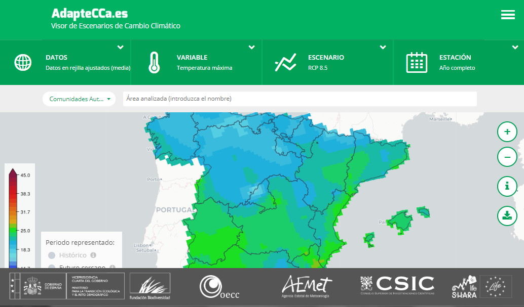 El Visor de Escenarios de AdapteCCa incorpora nuevas funciones, entre las que destaca la posibilidad consultar los datos en rejilla ajustados: los datos en rejilla provenientes de la iniciativa internacional Euro-CORDEX –que ya estaban disponibles en el Visor– han sido ajustados mediante una técnica de corrección de sesgo y se encuentran a disposición de todos los usuarios.