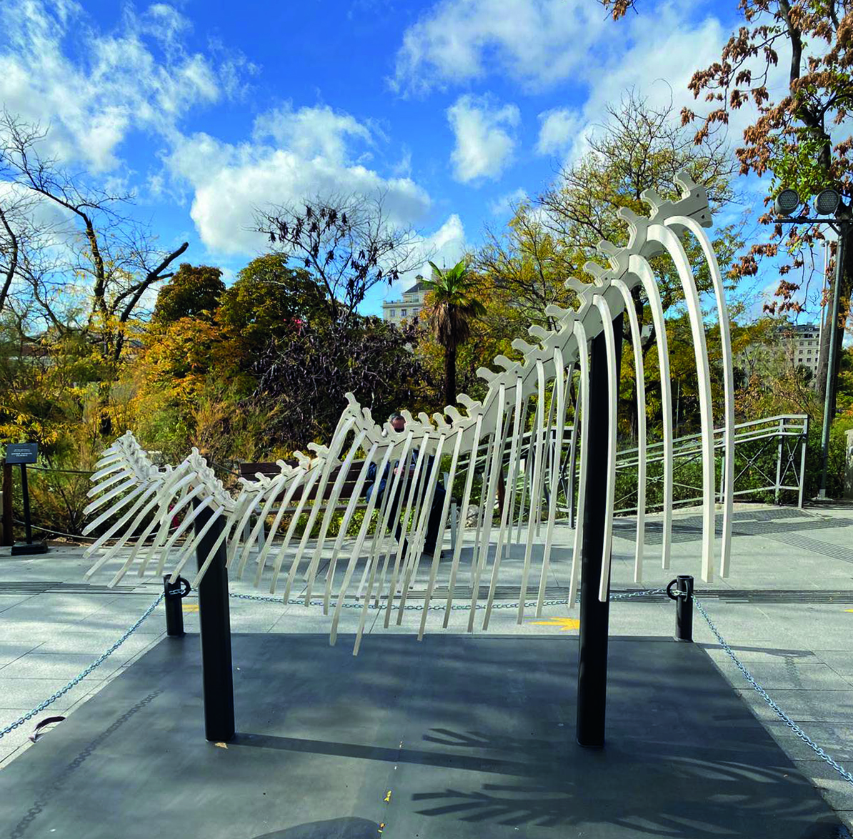 El Museo Nacional de Ciencias Naturales (MNCN-CSIC) presenta El esqueleto del cambio climático. Esta escultura, que mide tres metros cúbicos y pesa 1.500 kilos, representa, a través de una columna vertebral y costillas, los cambios en la temperatura global desde 1880 hasta 2024.